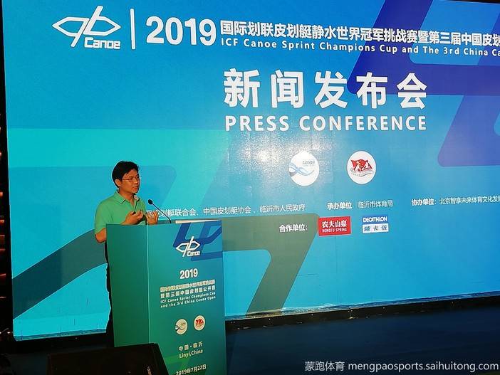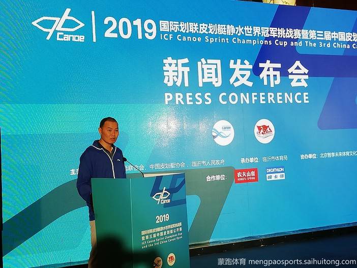 7月22日上午,2019国际划联皮划艇静水世界冠军挑战赛暨第三届中国皮划艇公开赛新闻发布会在北京举行。中国皮划艇协会执行主任万红军,北京大学中国体育产业研究中心执行主任何文义,临沂市人民政府副秘书长徐峰,临沂市体育局局长刘艳芬、副局长全志刚,北京智享未来体育文化发展有限公司董事长张军、总经理向伟以及中央、省、市各新闻单位媒体代表和赛事意向合作品牌代表、全国皮划艇运动爱好者代表共同出席了发布会。国际皮划艇联合会副主席科尼佐克·托马斯通过视频的形式对赛事启动表达了祝福。