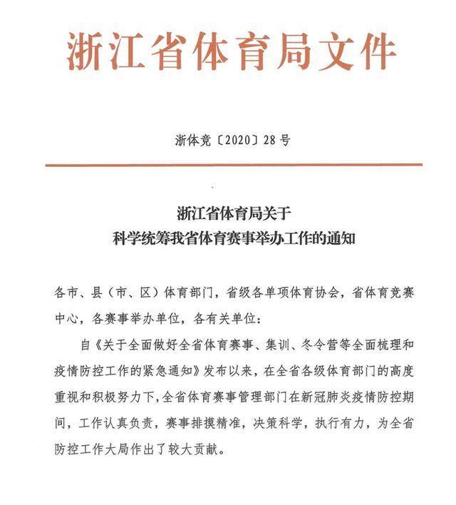 近日,浙江省体育局发布文件《浙江省体育局关于科学统筹我省体育赛事举办工作的通知》,在《通知》中,明确提到,科学合理安排赛事时间。对于高危的耐力性赛事,由于运动员需要一定的训练时间恢复体能和技术,如马拉松、越野、自行车、铁人三项、水上马拉松等,应当在新冠肺炎疫情防控解除一个月后举办。