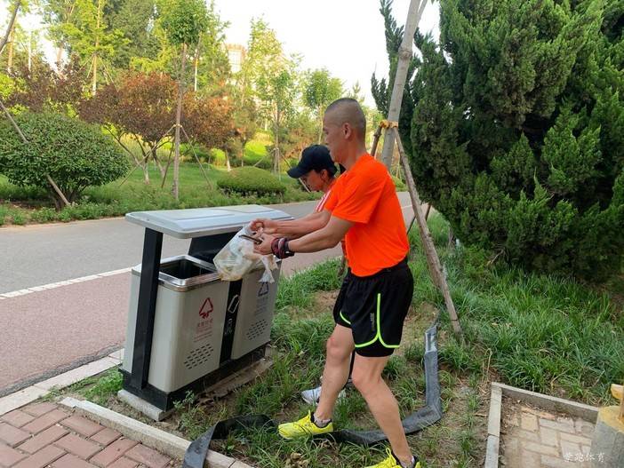 ![]() 临沂祊河绿化管理员晨跑过程中参与绿道环境保护工作 |