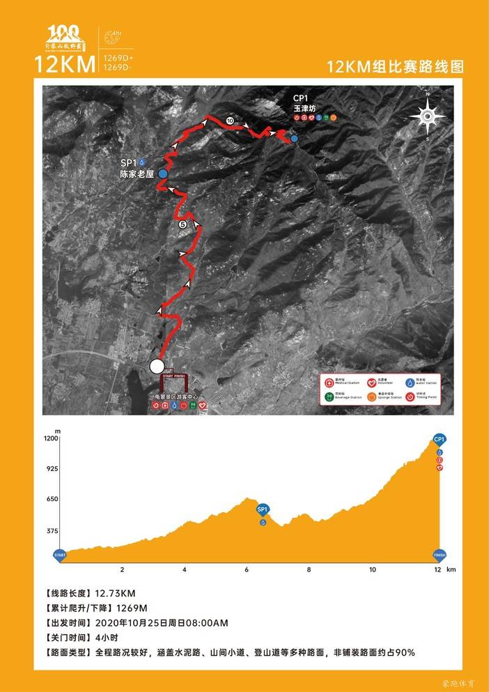 赛道路面配比:硬化路(水泥路面、沥青路面)16%,步栈道(土路、山路、乡村路)65,景区栈道(石台阶、栈道)19%。