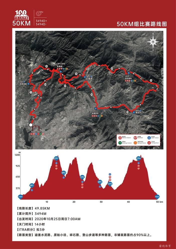 全程49.85km,爬升3494m,下降3494m