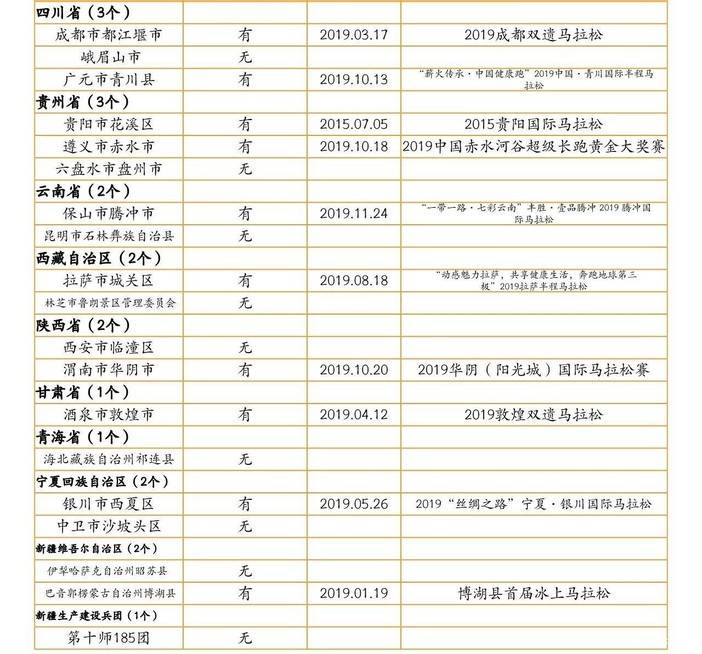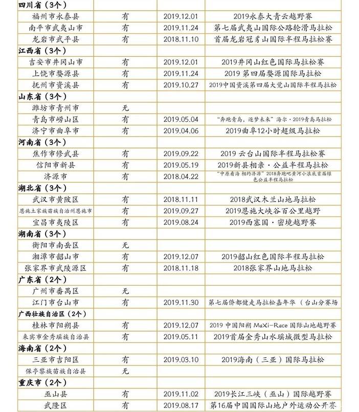三、71家全域旅游示范区马拉松开展情况