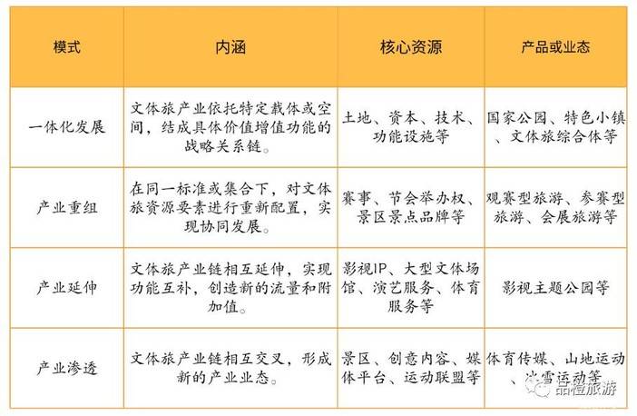 文体旅融合主要有一体化发展、产业重组、产业延伸、产业渗透四种模式。与四种模式匹配需要不同的资源,表现出不同的产品和业态。在全域旅游大发展机遇下,以马拉松为代表的体育赛事,已经进入产业更新重组阶段,涉及一体化发展模式。