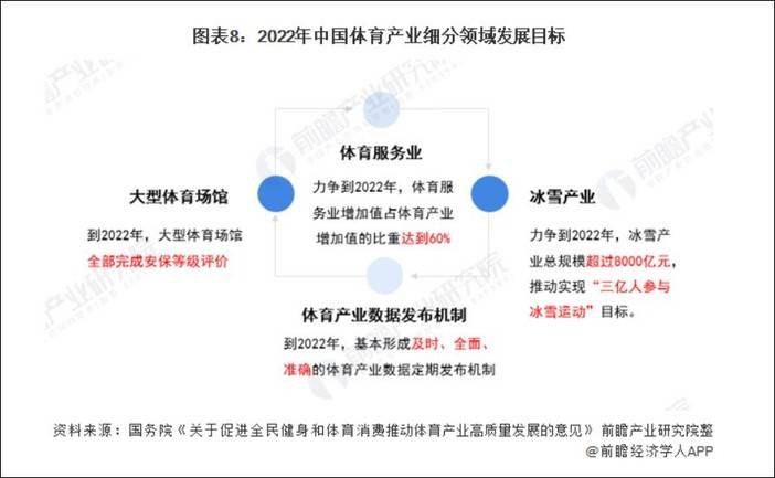 此外,根据根据国务院于2019年印发的《关于促进全民健身和体育消费推动体育产业高质量发展的意见》,其中针对大型体育场馆、体育服务业、冰雪产业和体育产业数据发布机制提出了2022年的发展目标: