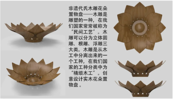 代氏木雕花朵形置物盘