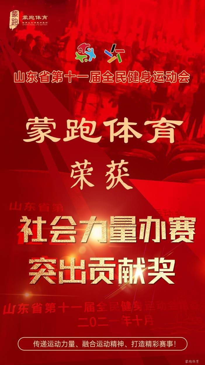 蒙跑体育荣获山东省第十一届全民健身运动会社会力量办赛突出贡献奖!
