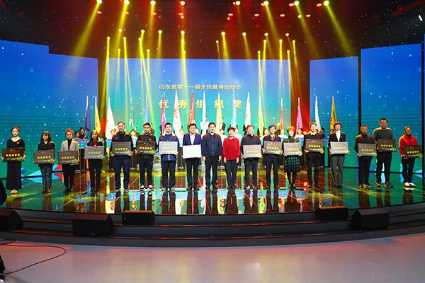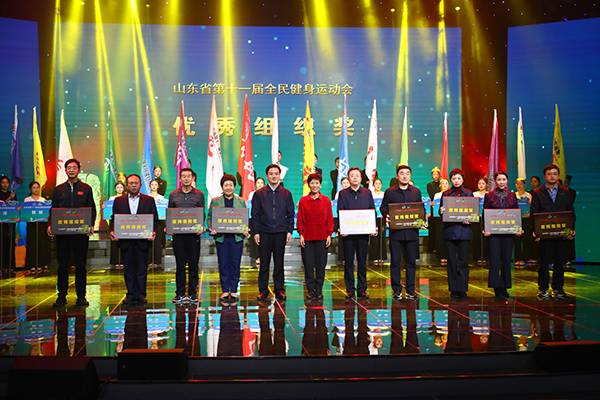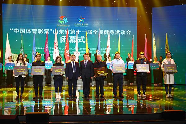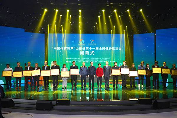 当天的闭幕式以精彩的文体展演贯穿起来,其间进行了山东省第十一届全民健身运动会优秀组织奖、先进单位、社会力量办赛突出贡献奖颁奖;为2021年山东省“全民健身最美社区”评选获奖单位授牌;进行了山东省全民健身运动会会旗交接仪式,淄博市成为下届运动会承办地。
