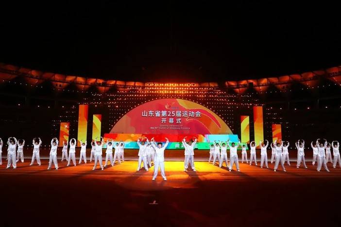 陆治原宣布,山东省第二十五届运动会开幕。全场响起热烈掌声和欢呼声。