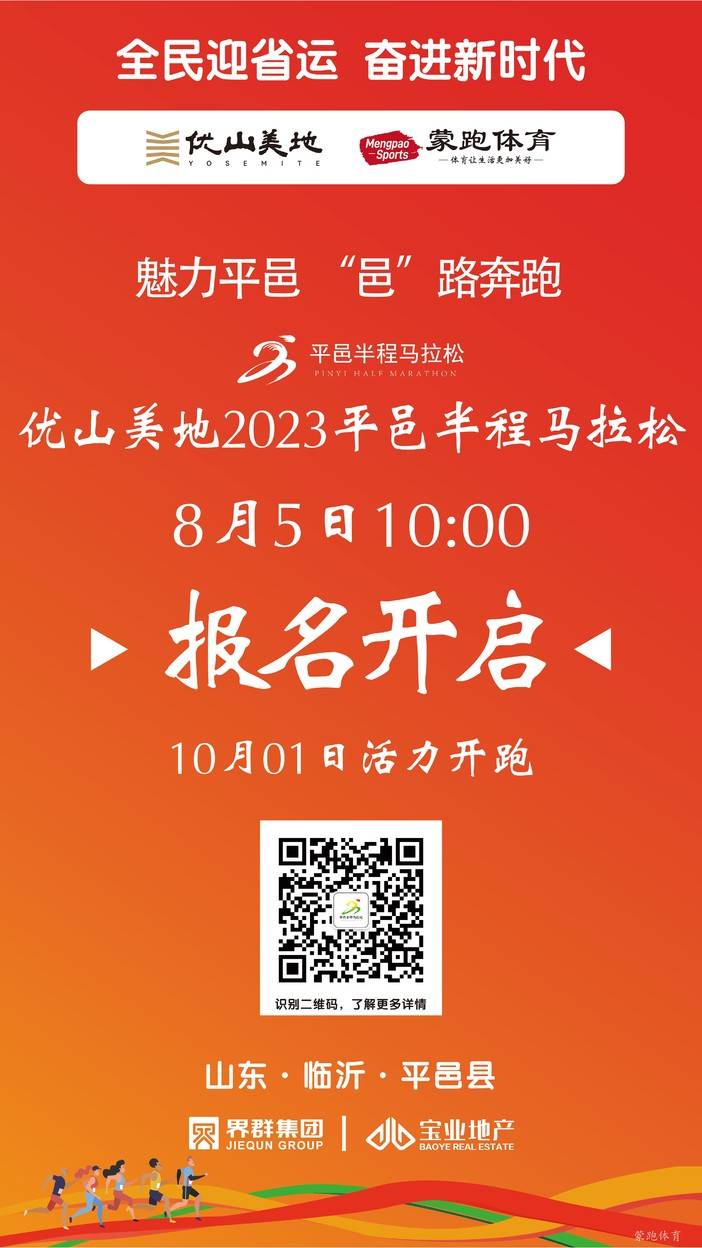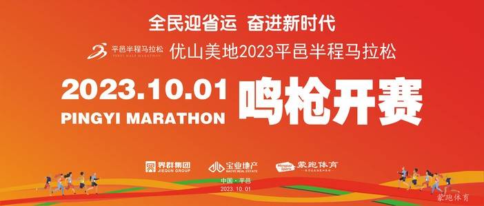 优山美地2023平邑半程马拉松定于10月1日7点30分在平邑县祥云湖广场鸣枪开跑,赛事总规模5000人,其中半程马拉松(21.0975公里)3000人、健康跑2000人;8月5日10:00-9月10日23:59日开放报名,先报先得,额满即止!