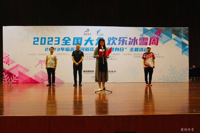 2023年全国大众欢乐冰雪周”全民冰雪公开课(临沂站)暨临沂沂河新区全民健身日主题活活动由国家体育总局冬季运动管理中心主办,临沂沂河新区教育体育和卫生健康局、山东蒙跑体育文化传媒有限公司、山东德体智体育文化传媒有限公司承办。临沂沂河新区教育体育和卫生健康局副局长、党组成员马洁,临沂沂河新区芝麻墩街道副科级干部聂海燕,临沂经开体育发展有限公司总经理化广伟,山东蒙跑体育体育文化传媒有限公司总经理仲启帆,山东德体智体育文化传媒有限公司总经理张闫功出席活动开幕式。