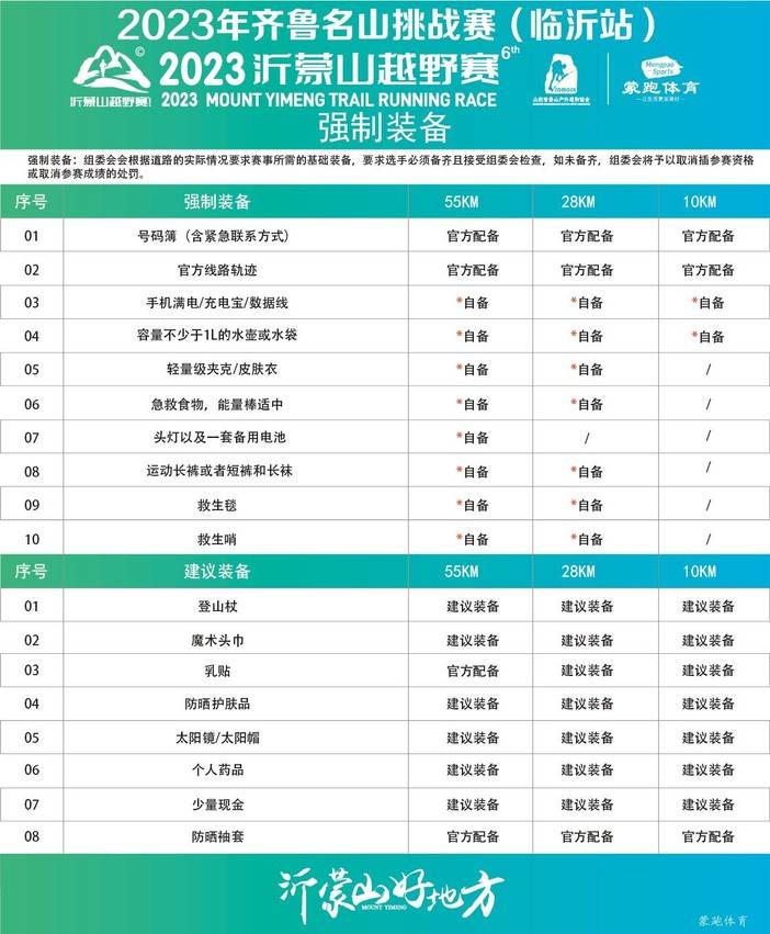 1、所有报名参赛选手均获得一件2023沂蒙山越野赛参赛服;
