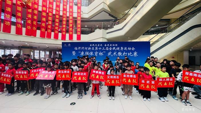 10月22日,2023年临沂沂河新区第十三届全民健身运动会暨“康胜体育杯”武术散打比赛在沂河新区东方购物中心正式开赛。本次比赛由临沂沂河新区教育体育和卫生健康局主办,临沂经开体育发展有限公司承办,山东蒙跑体育文化传媒有限公司、山东康胜体育赛事运营有限公司协办。共有来自20多个俱乐部200余名运动员参赛。