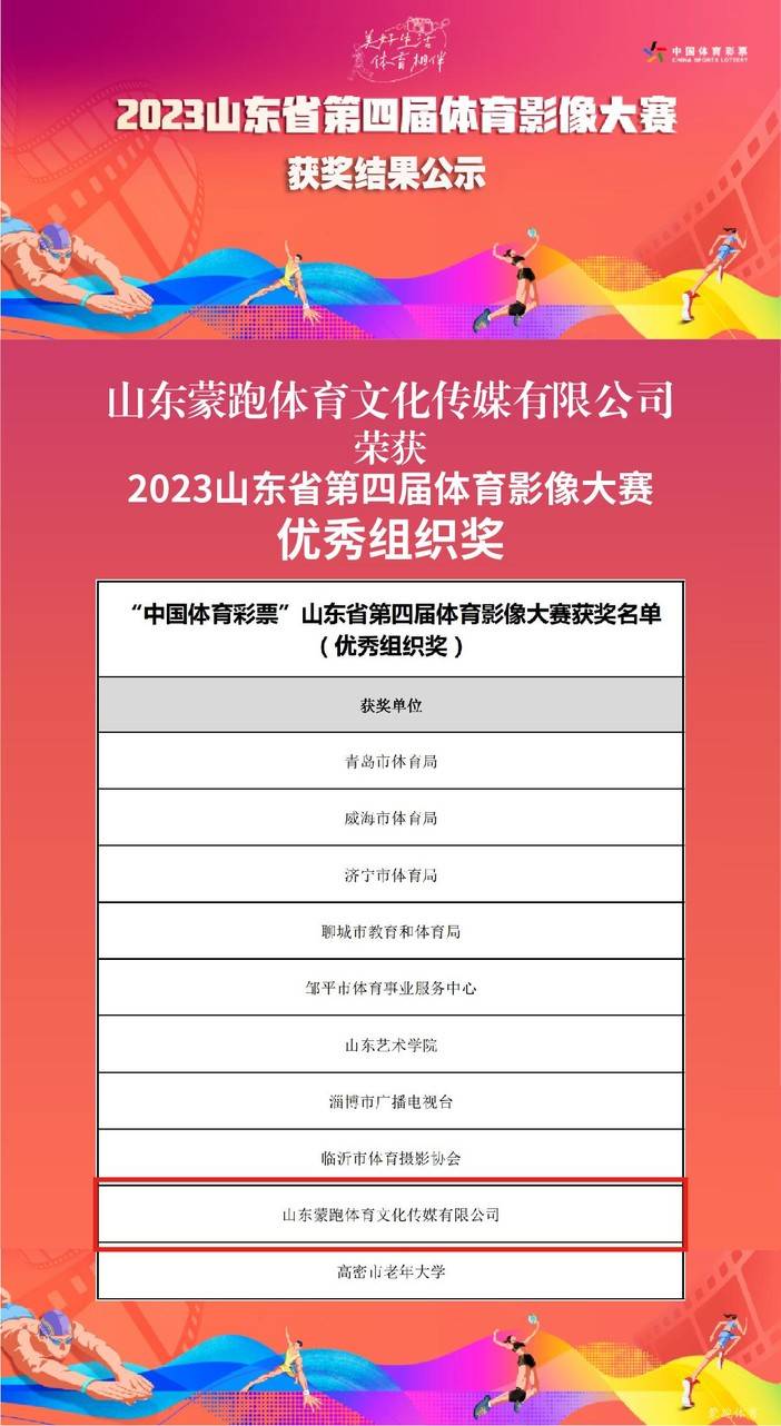 喜讯丨蒙跑体育荣获山东省第四届体育影像大赛优秀组织奖